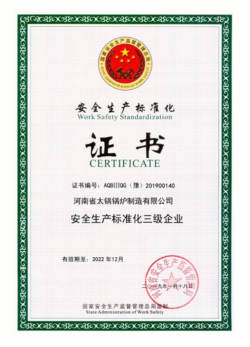 A級鍋爐制造許可證